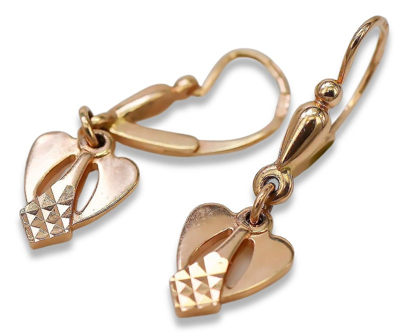 Vintage rose pink 14k 585 gold Vintage leaf earrings ven245
