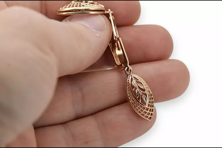 Embrace the allure of a bygone era with these exquisite Vintage Rose Pink 14K Gold Leaf Earrings. A testament to Soviet craftsmanship, these earrings capture the essence of timeless elegance. Perfect for adding a touch of refined beauty to any ensemble, these earrings are a unique piece of Russian vintage jewelry that tells a story of heritage and artistry.