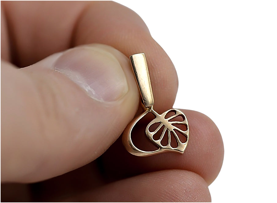 Vintage rose pink 14k 585 gold Vintage leaf pendant vpn026