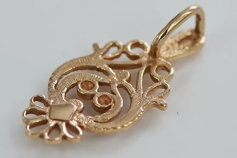 Vintage rose pink 14k 585 gold Vintage leaf pendant vpn056