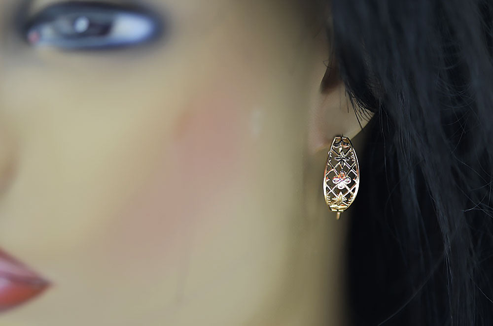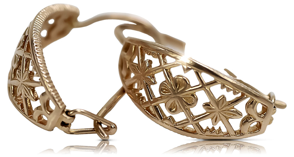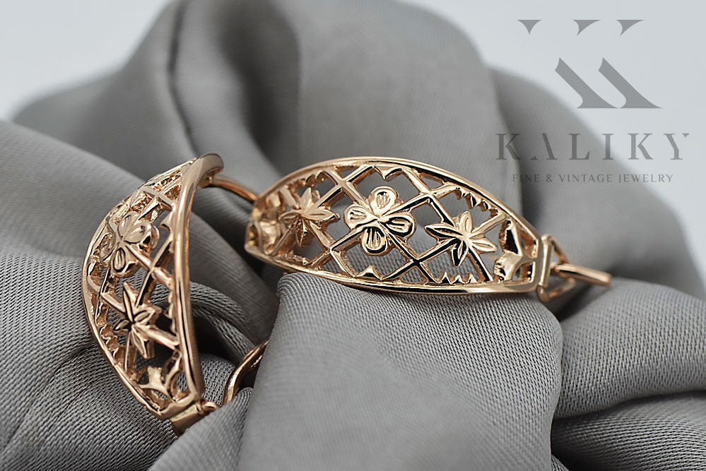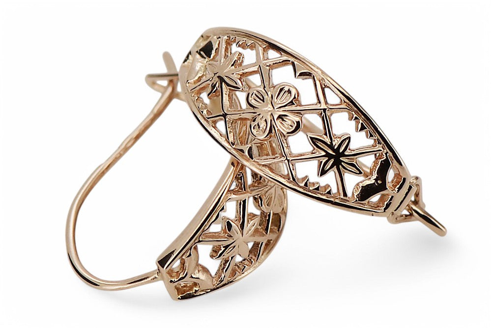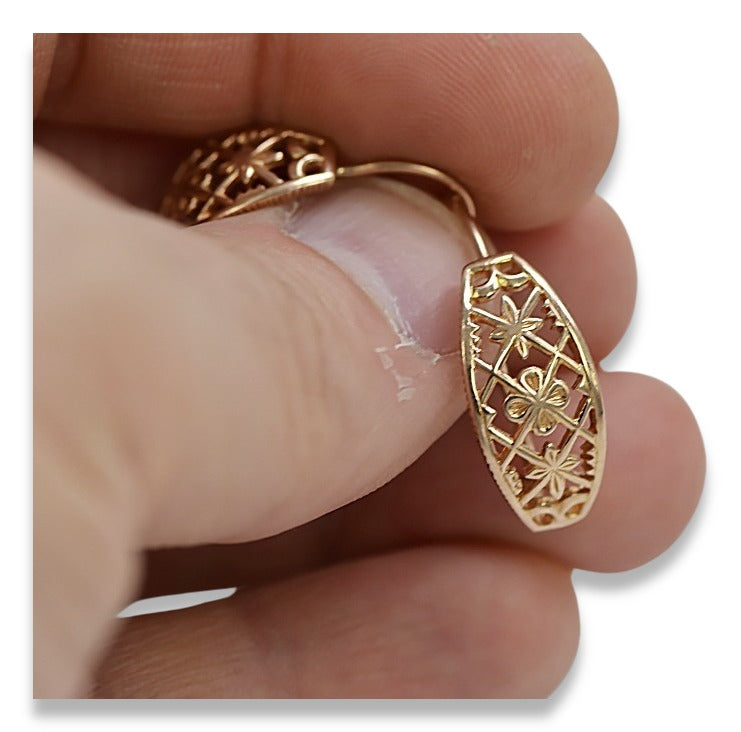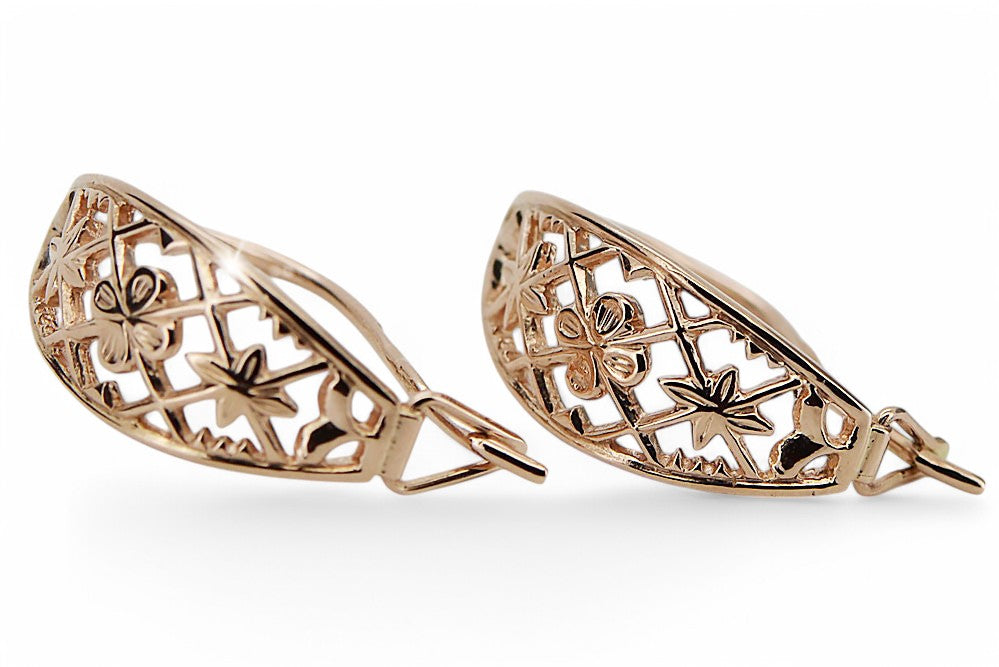 Vintage rose pink 14k 585 gold Vintage openwork earrings ven146