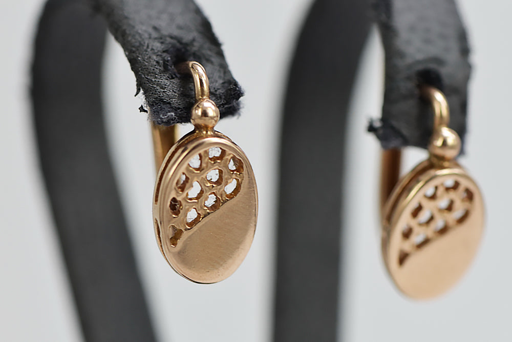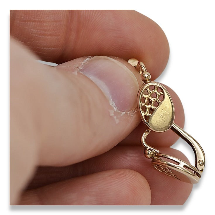 Vintage rose pink 14k 585 gold Vintage oval earrings ven123