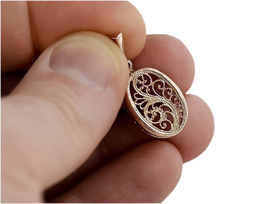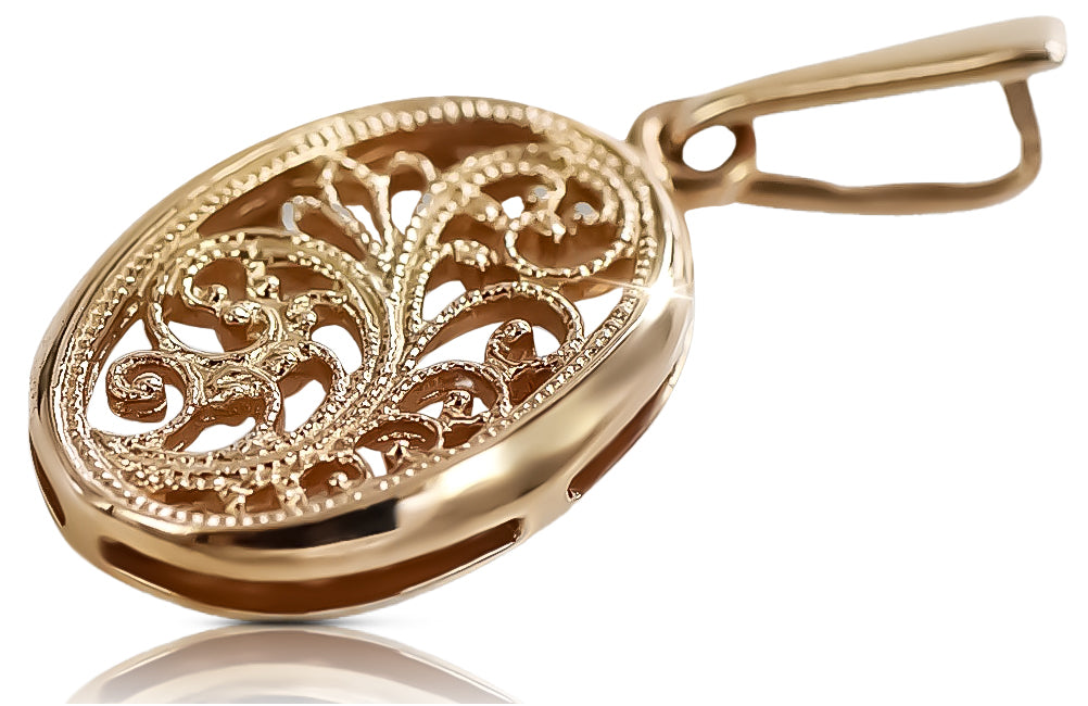 Vintage rose pink 14k 585 gold Vintage oval pendant vpn088