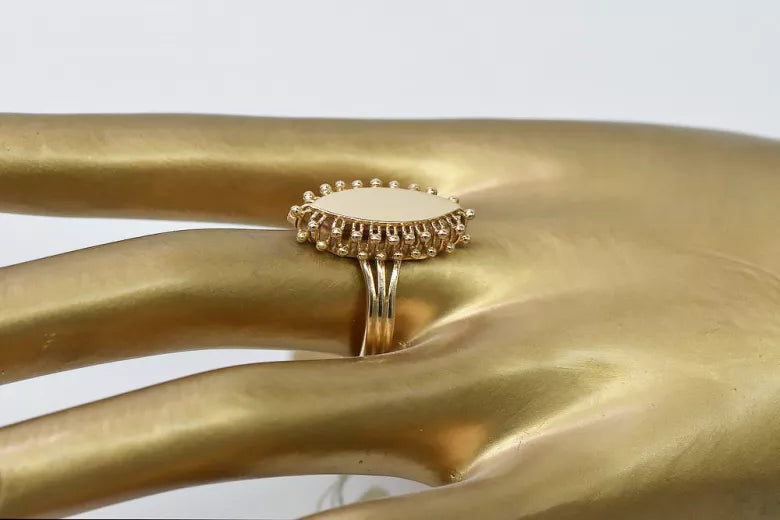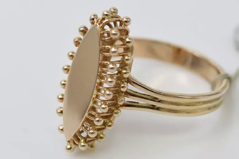 Embrace the allure of a bygone era with this exquisite vintage ring, a testament to enduring beauty and Soviet craftsmanship. This authentic piece of Russian vintage jewelry, crafted from warm 14K rose gold, whispers tales of romance and refined elegance, perfect for adding a touch of timeless sophistication to any ensemble. Discover the unparalleled charm and historical significance of this captivating treasure.