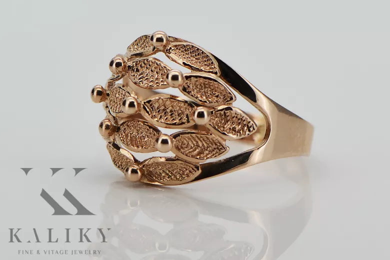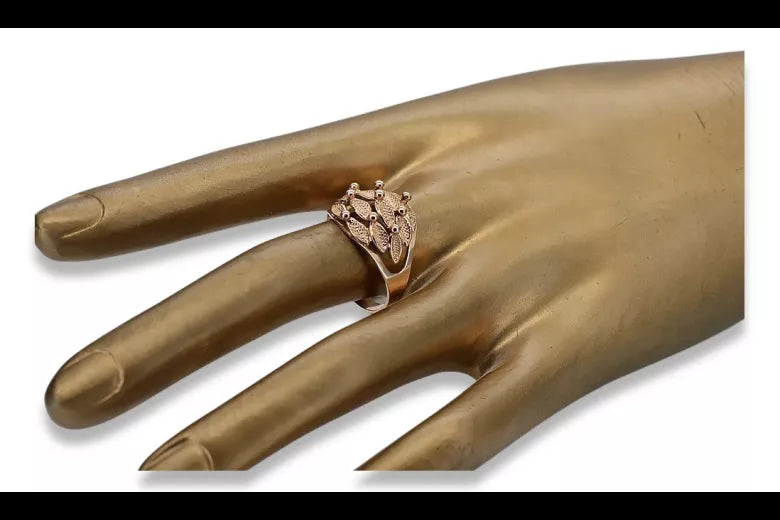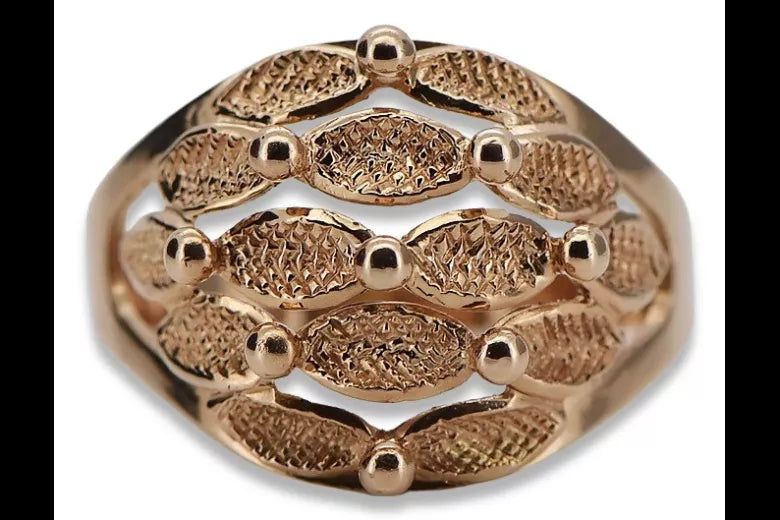 Embrace the allure of a bygone era with this exquisite Vintage rose pink 14k 585 gold ring (vrn045), a testament to enduring Soviet craftsmanship. This piece is more than just jewelry; it's a whisper of history, a touch of romance, and a symbol of timeless elegance. Adorn your hand with a piece of Russian vintage jewelry that speaks volumes without uttering a word.