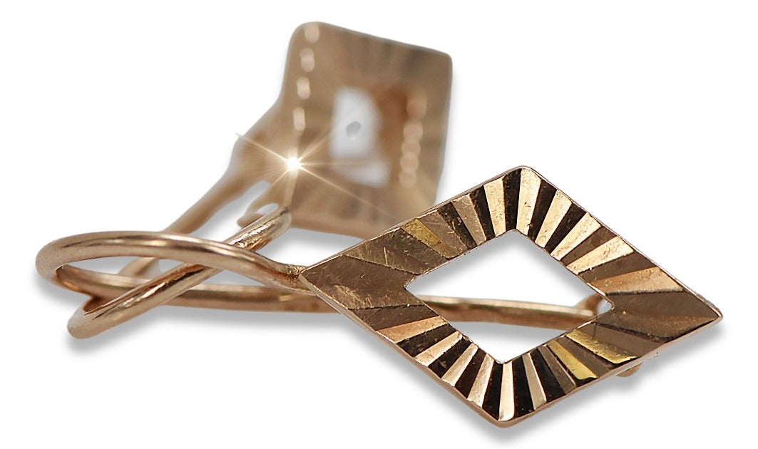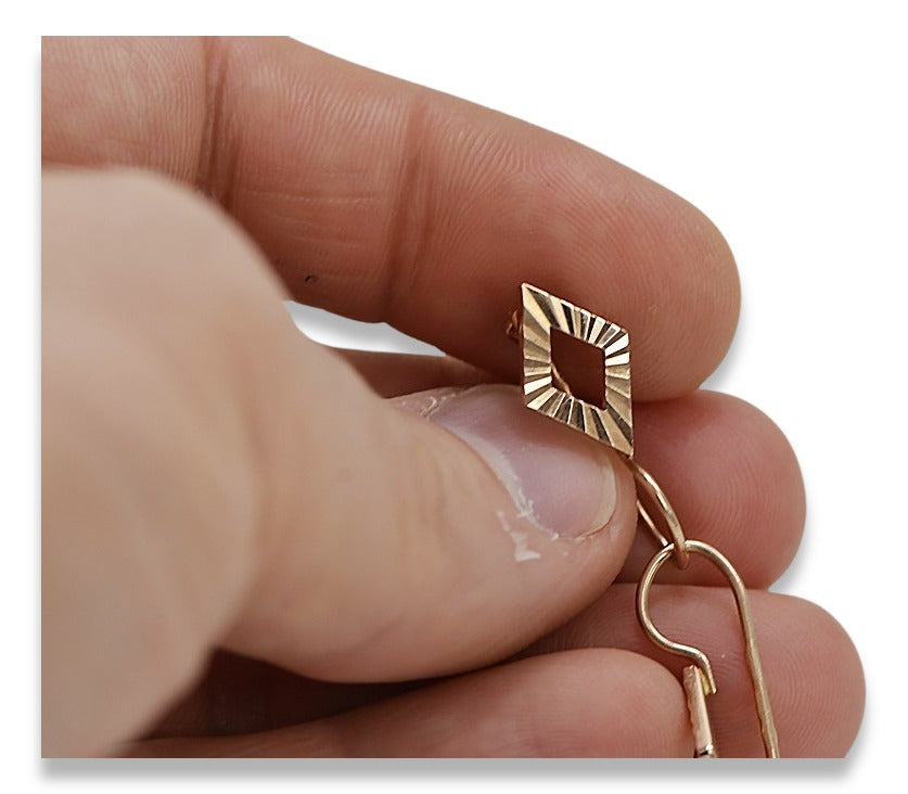 Vintage rose pink 14k 585 gold Vintage square earrings ven144
