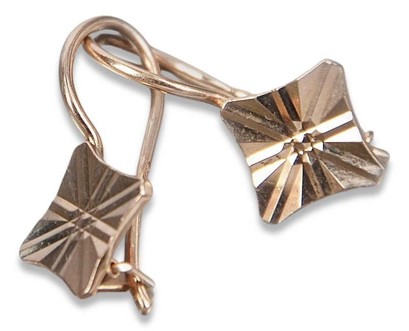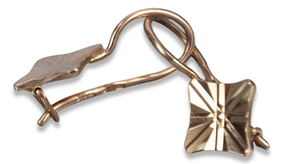 Vintage rose pink 14k 585 gold Vintage square earrings ven156