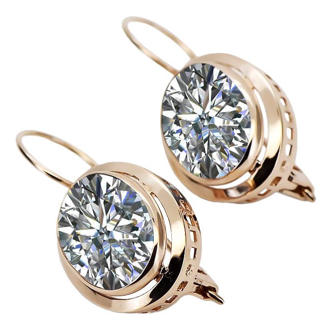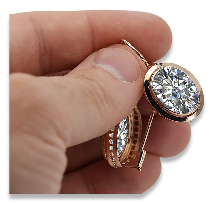Vintage rose pink 14k 585 gold Zircon earrings vec114 vec114r-zi