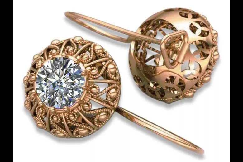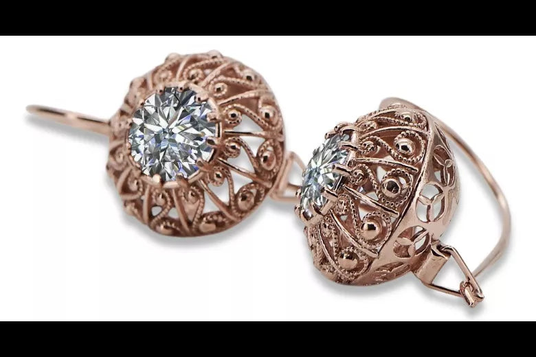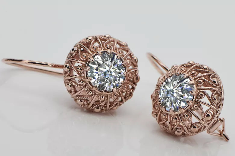 Vintage rose pink 14k 585 gold zorcon earrings vec002 Russian Soviet style