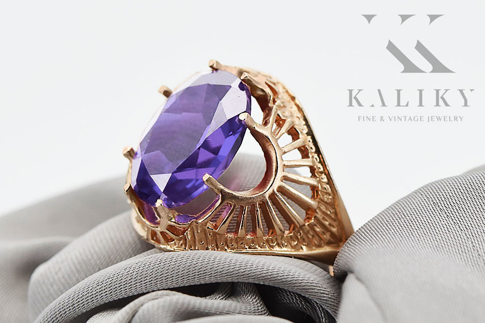 Vintage rose pink 14k gold 585 Alexandrite ring vrc003r Russian Soviet Vintage style