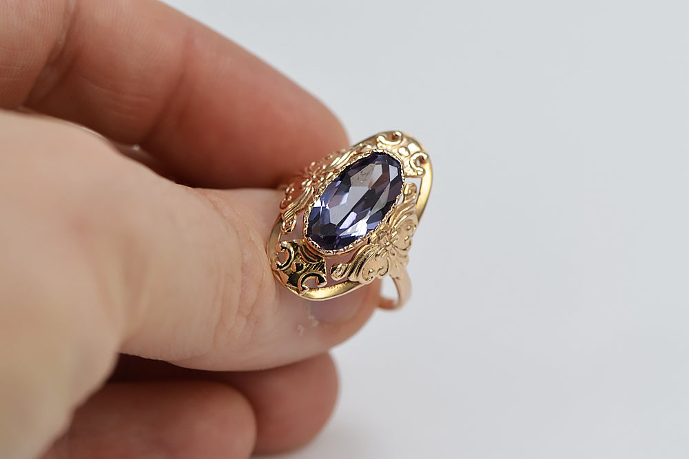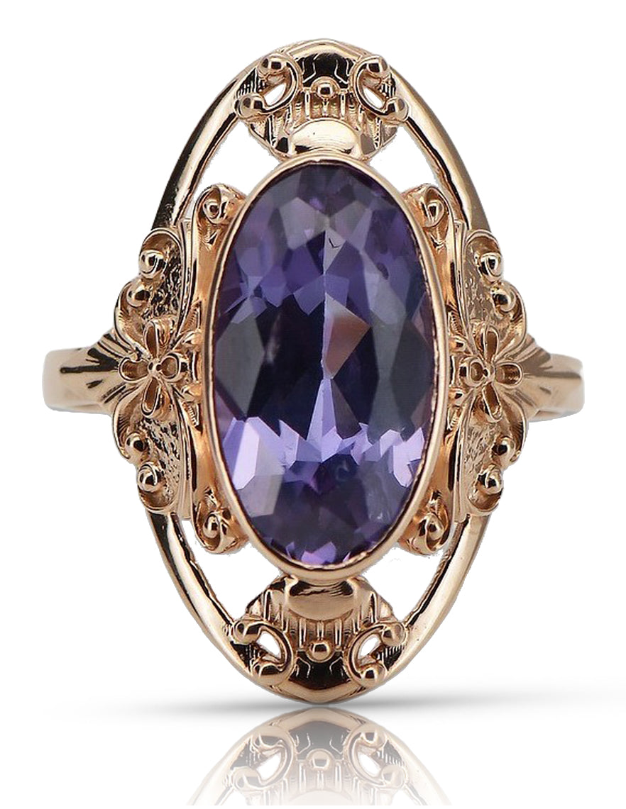 Vintage rose pink 14k gold 585 Alexandrite ring vrc014 Vintage