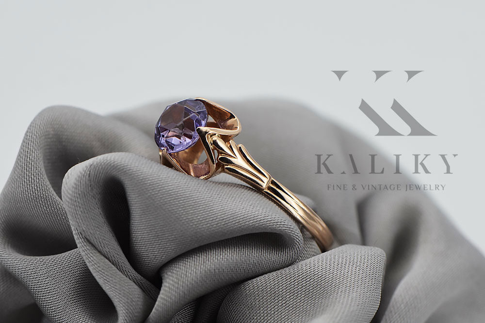 Vintage rose pink 14k gold 585 Alexandrite ring vrc023 Vintage