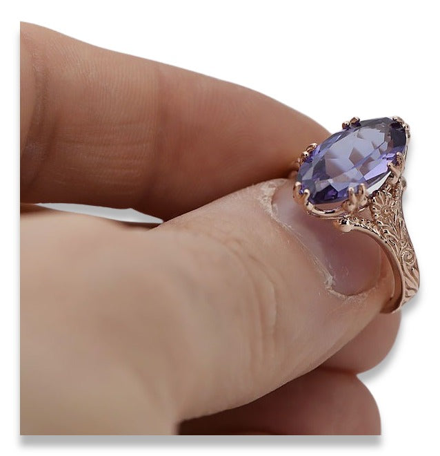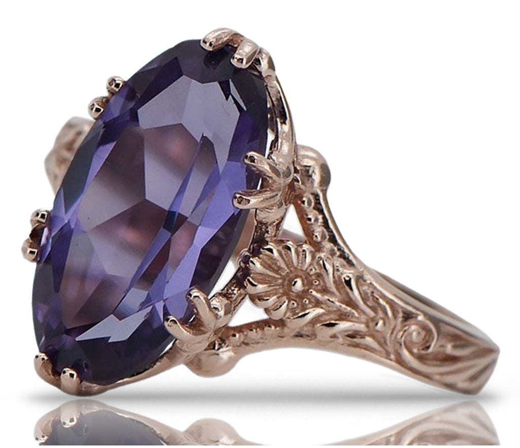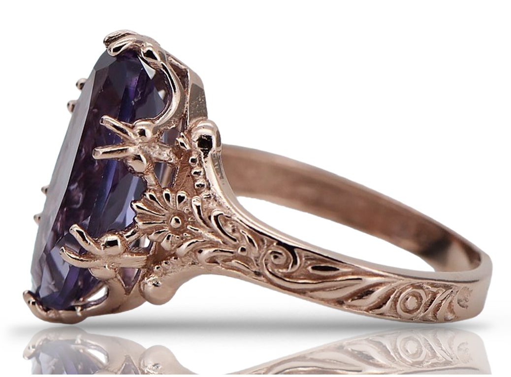 Vintage rose pink 14k gold 585 Alexandrite ring vrc084 Vintage