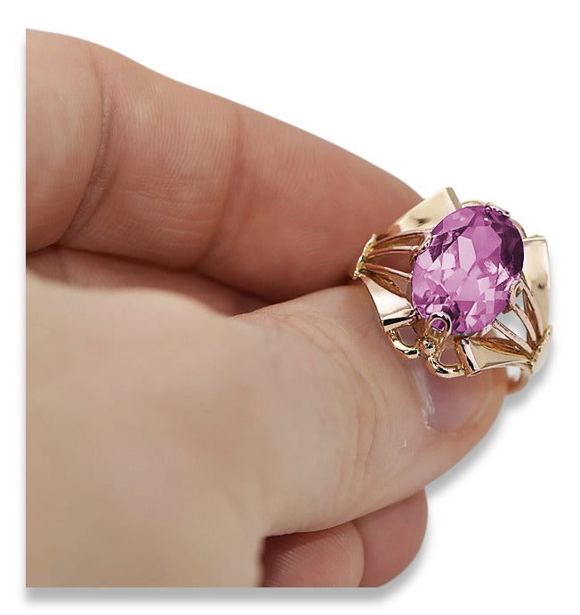 Vintage rose pink 14k gold 585 Amethyst ring vrc015 Vintage