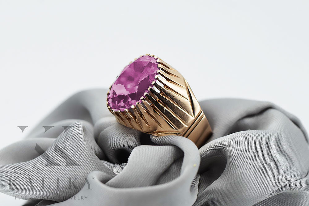 Vintage rose pink 14k gold 585 Amethyst ring vrc048 Vintage Russian Soviet style