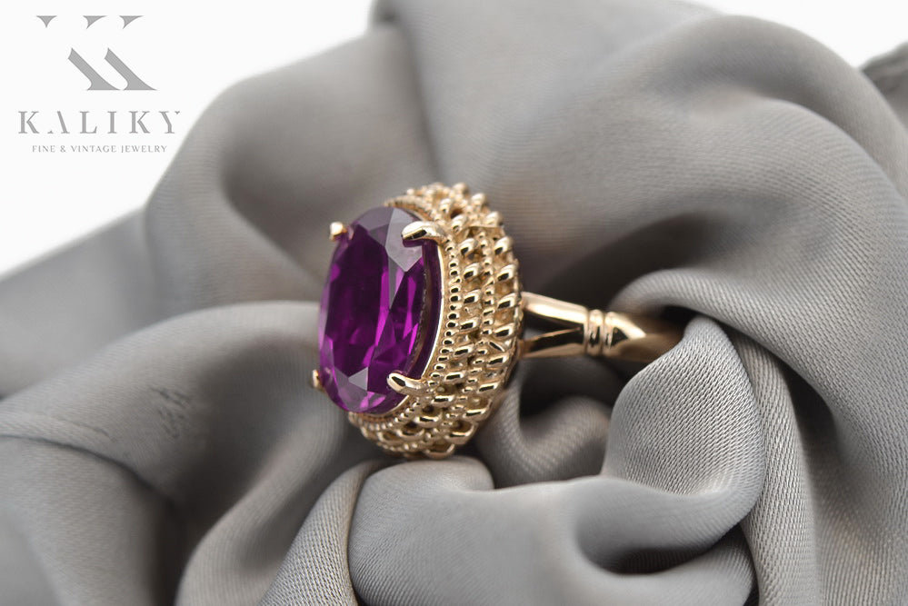 Vintage rose pink 14k gold 585 Amethyst ring vrc068 Vintage