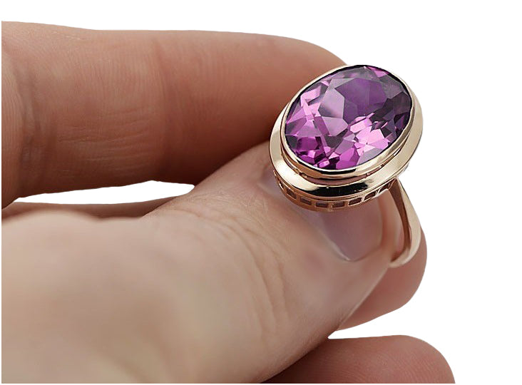 Vintage rose pink 14k gold 585 Amethyst ring vrc285 Vintage Russian Soviet style