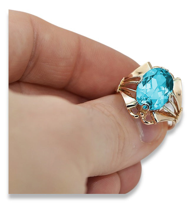 Vintage rose pink 14k gold 585 Aquamarine ring vrc015 Vintage