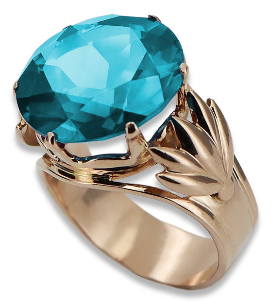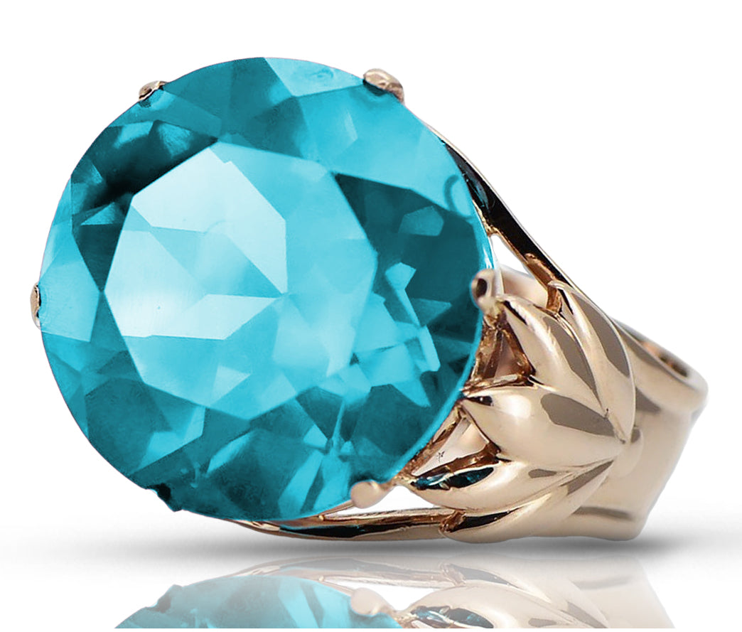 Vintage rose pink 14k gold 585 Aquamarine ring vrc029 Vintage