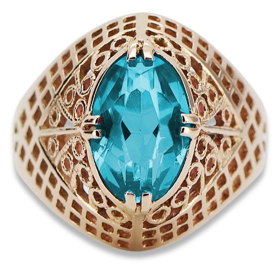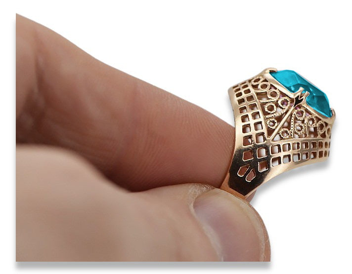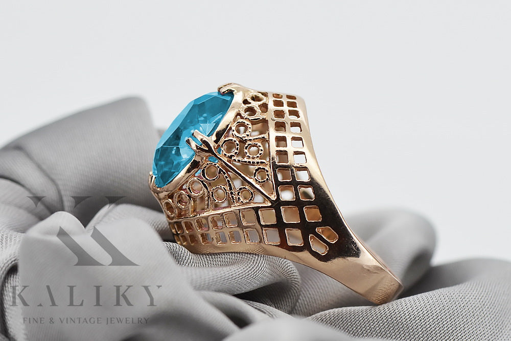 Vintage rose pink 14k gold 585 Aquamarine ring vrc030 Vintage