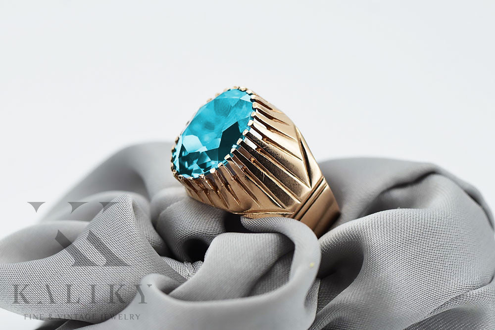 Vintage rose pink 14k gold 585 Aquamarine ring vrc048 Vintage Russian Soviet style