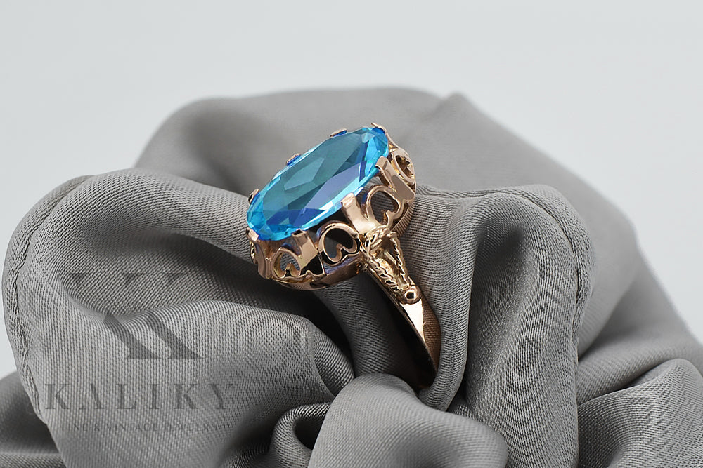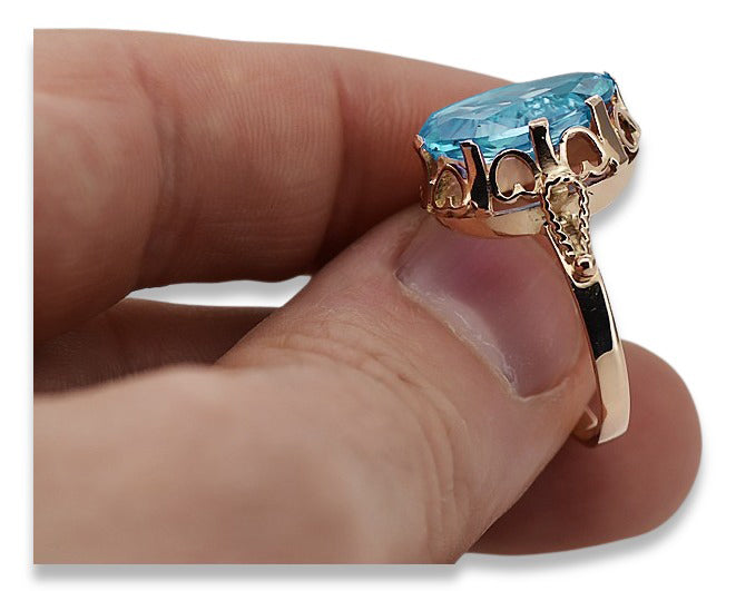 Vintage rose pink 14k gold 585 Aquamarine ring vrc134 Vintage