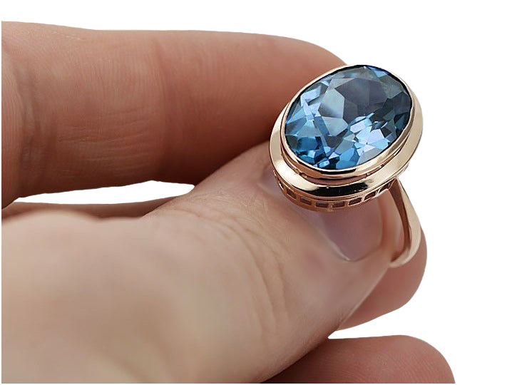 Vintage rose pink 14k gold 585 Aquamarine ring vrc285 Vintage Russian Soviet style