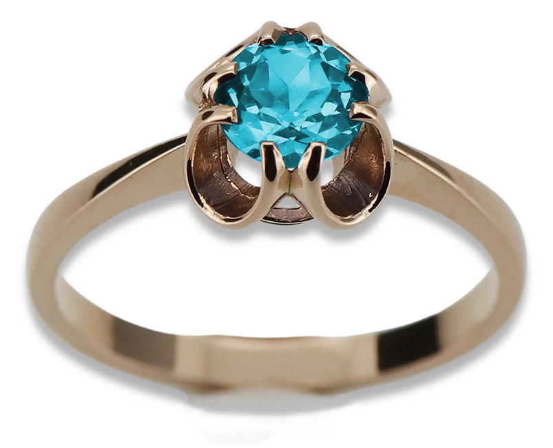 Vintage rose pink 14k gold 585 Aquamarine ring vrc348 Vintage