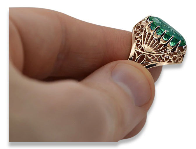 Vintage rose pink 14k gold 585 Emerald ring vrc020 Vintage