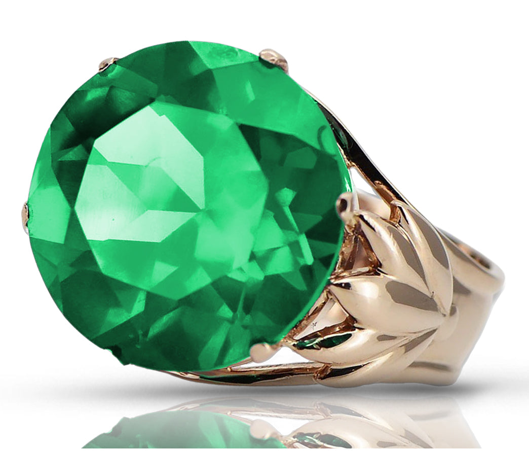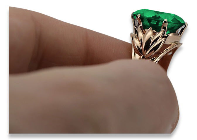 Vintage rose pink 14k gold 585 Emerald ring vrc029 Vintage