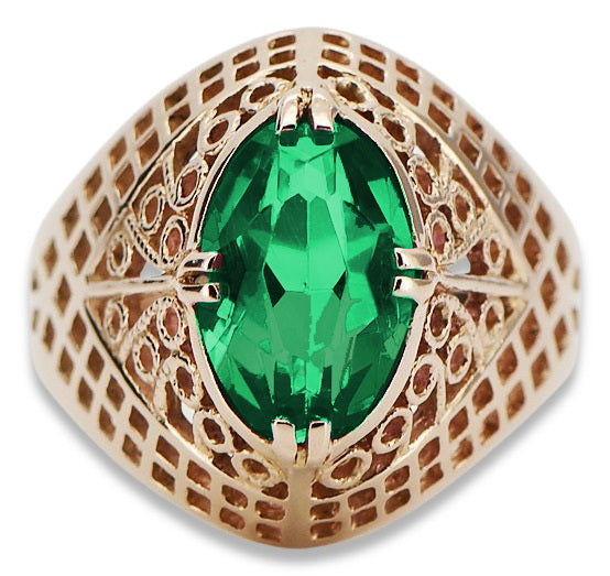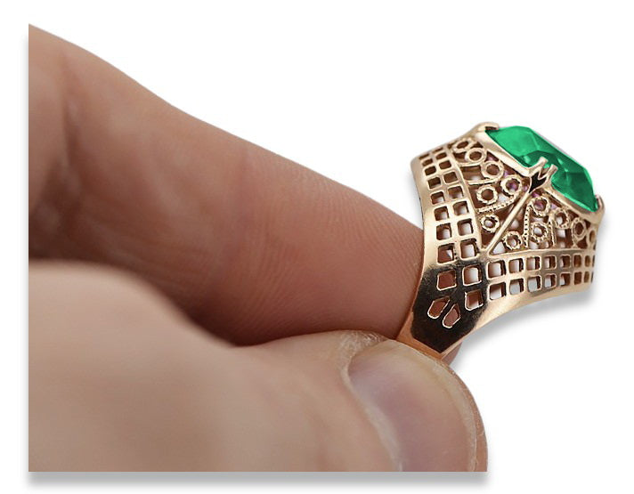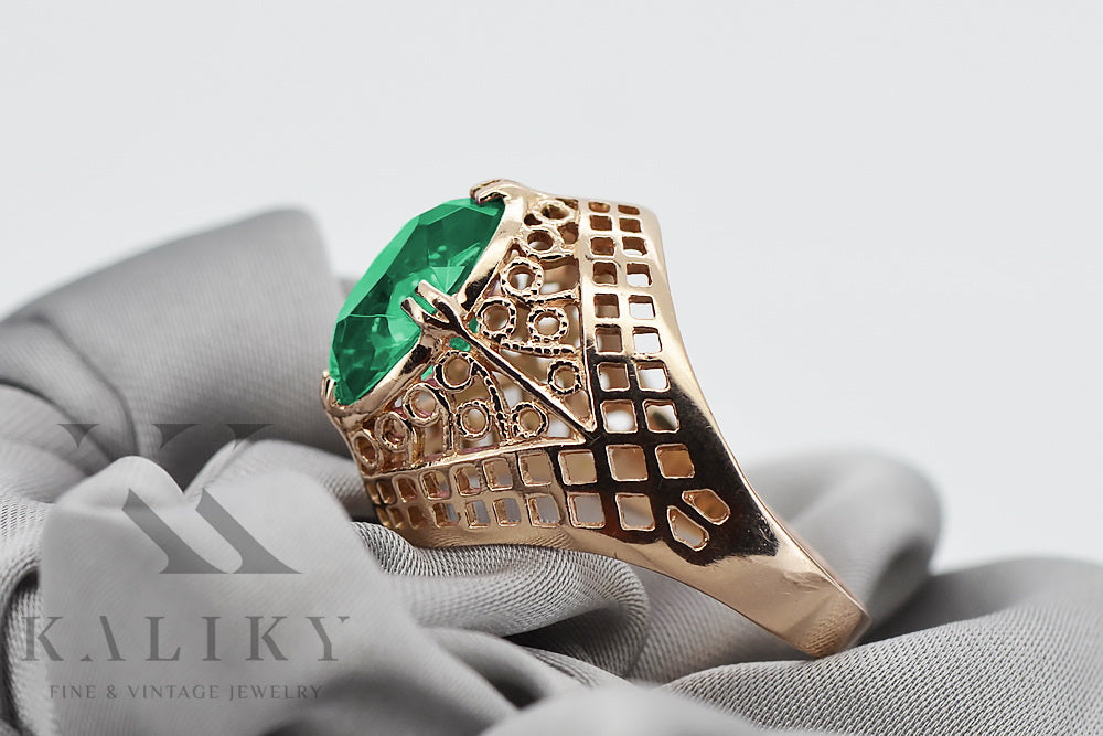 Vintage rose pink 14k gold 585 Emerald ring vrc030 Vintage