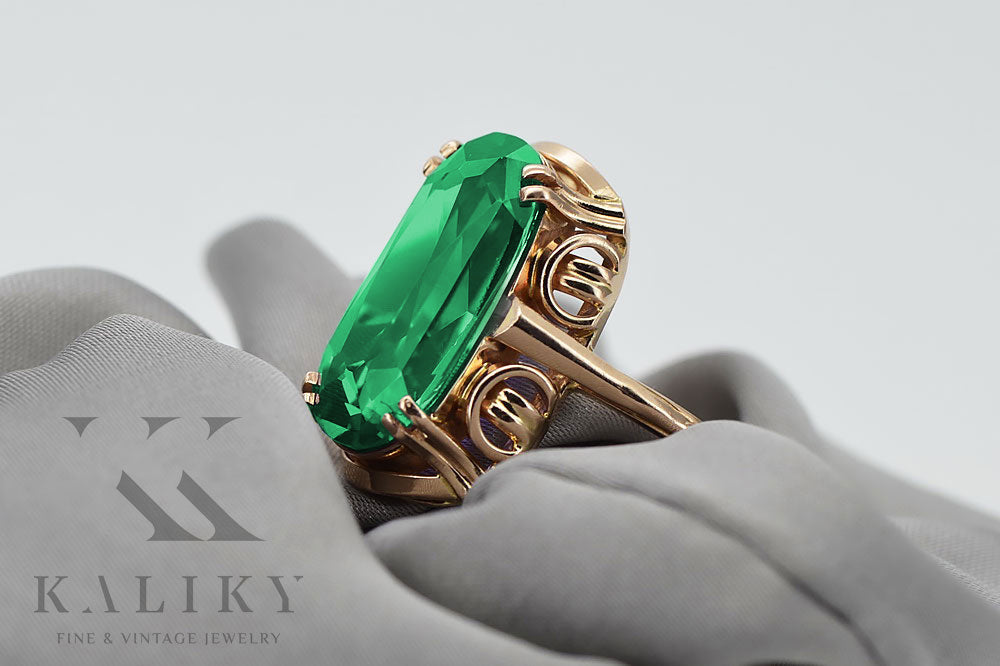 Vintage rose pink 14k gold 585 Emerald ring vrc038 Vintage