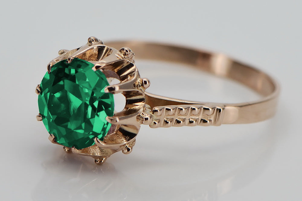 Vintage rose pink 14k gold 585 Emerald ring vrc045 Vintage