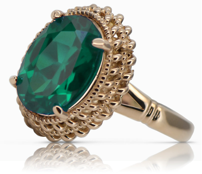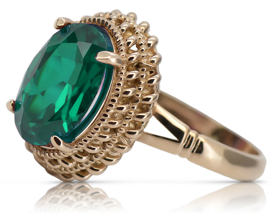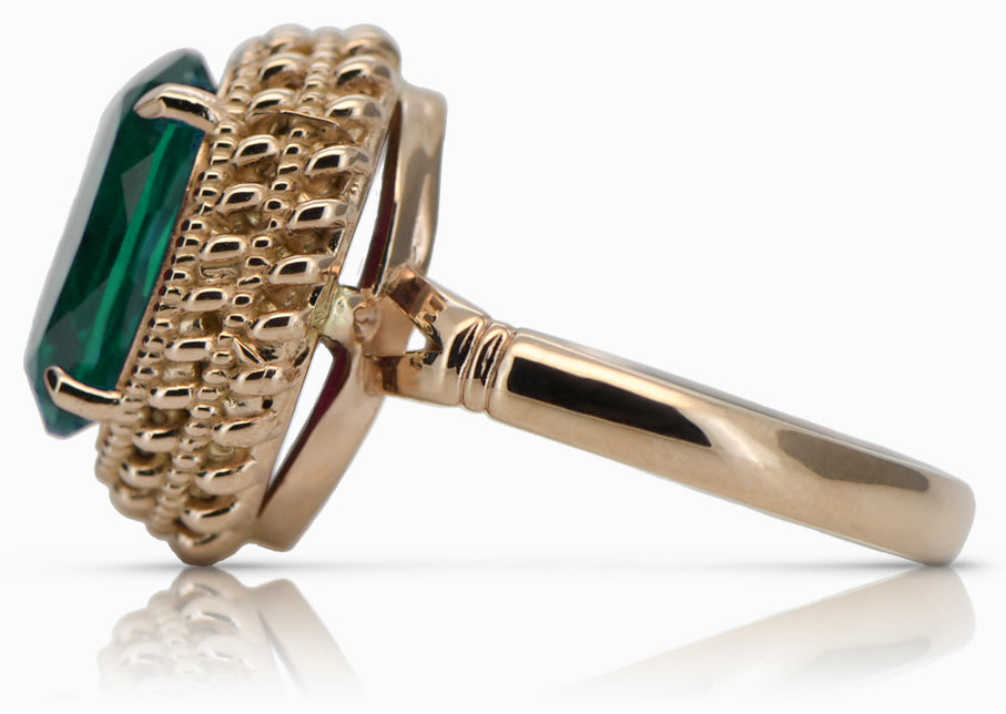 Vintage rose pink 14k gold 585 Emerald ring vrc068 Vintage