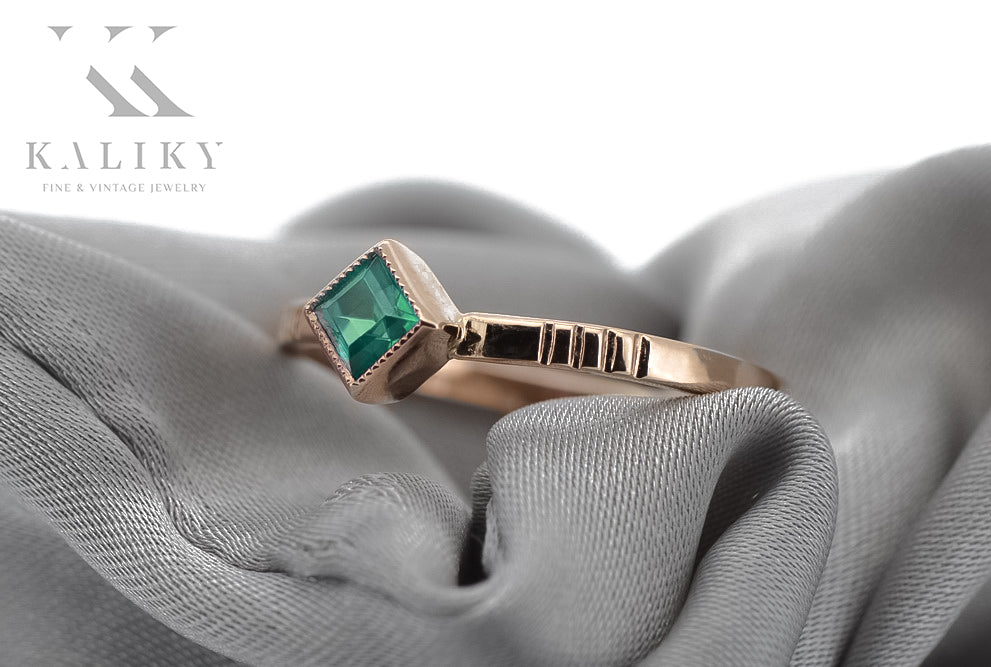 Vintage rose pink 14k gold 585 Emerald ring vrc138 Vintage