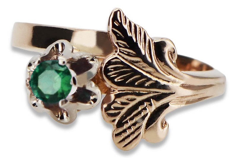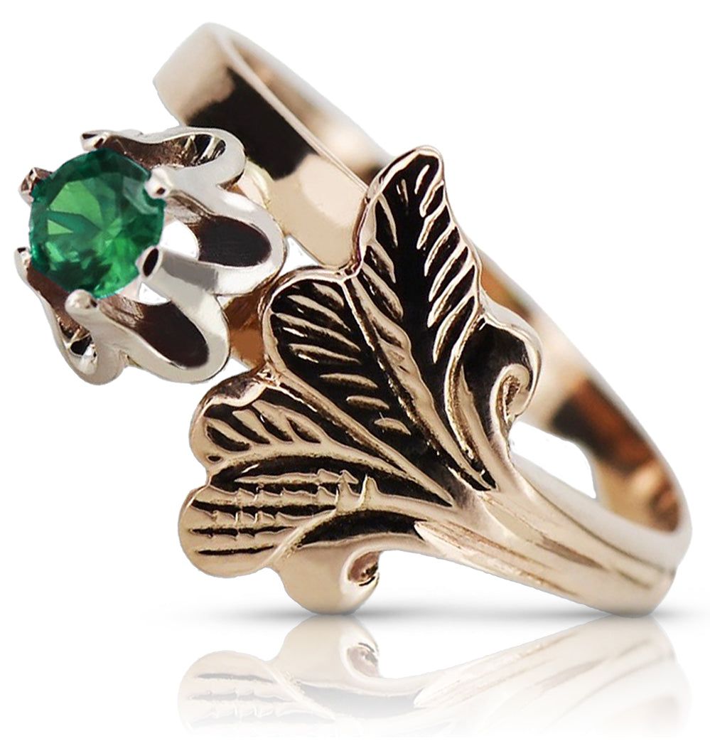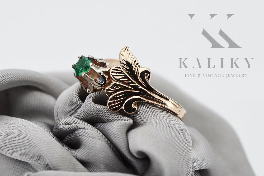 Vintage rose pink 14k gold 585 Emerald ring vrc169 Vintage
