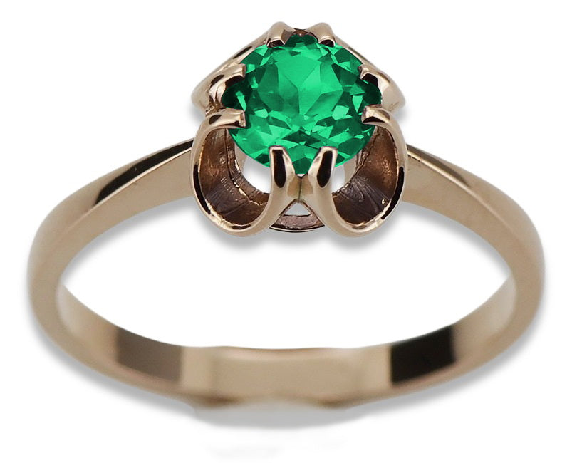 Vintage rose pink 14k gold 585 Emerald ring vrc348 Vintage
