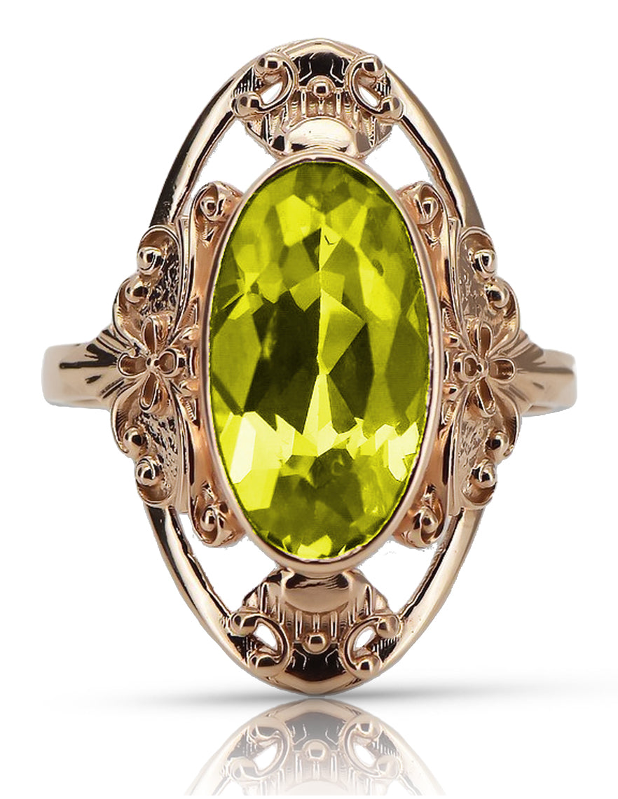 Vintage rose pink 14k gold 585 Peridot ring vrc014 Vintage