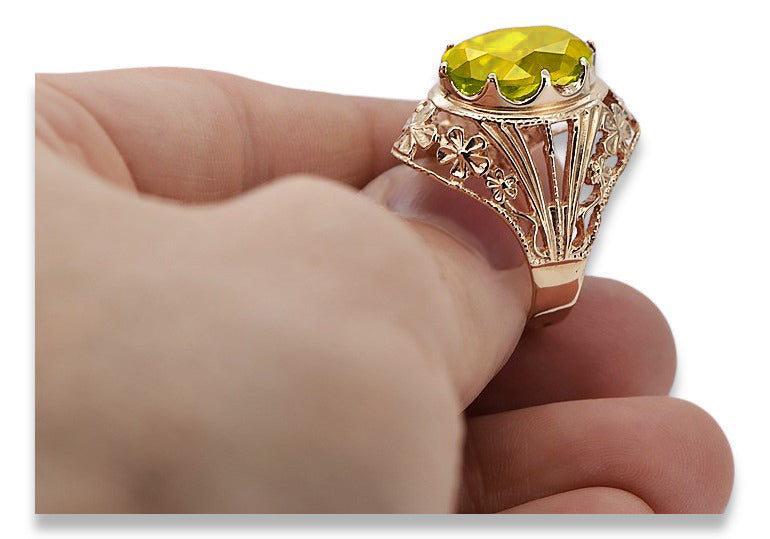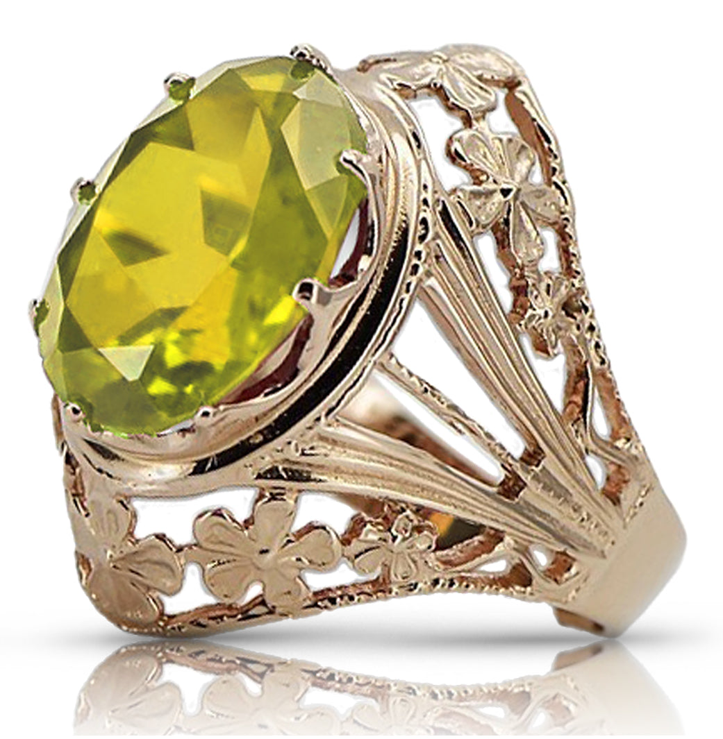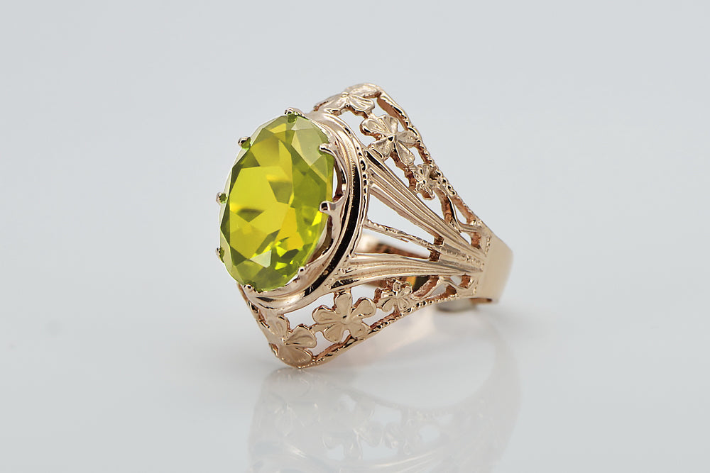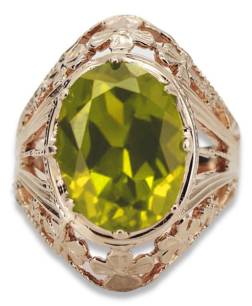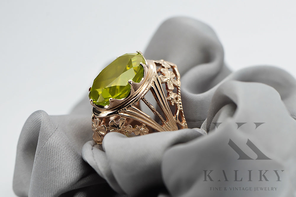 Vintage rose pink 14k gold 585 Peridot ring vrc031 Vintage