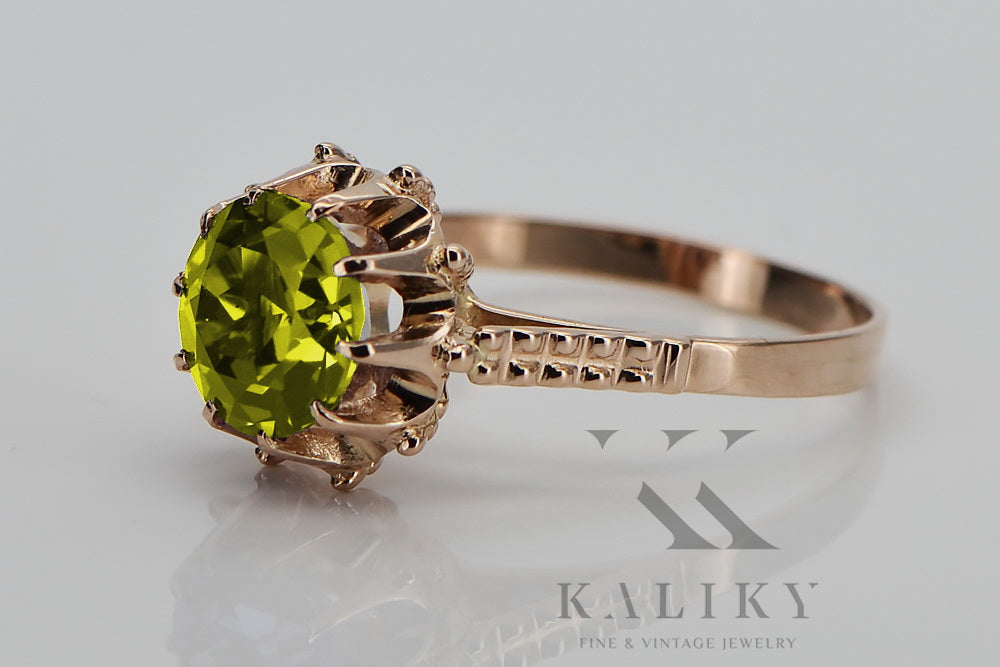 Vintage rose pink 14k gold 585 Peridot ring vrc045 Vintage