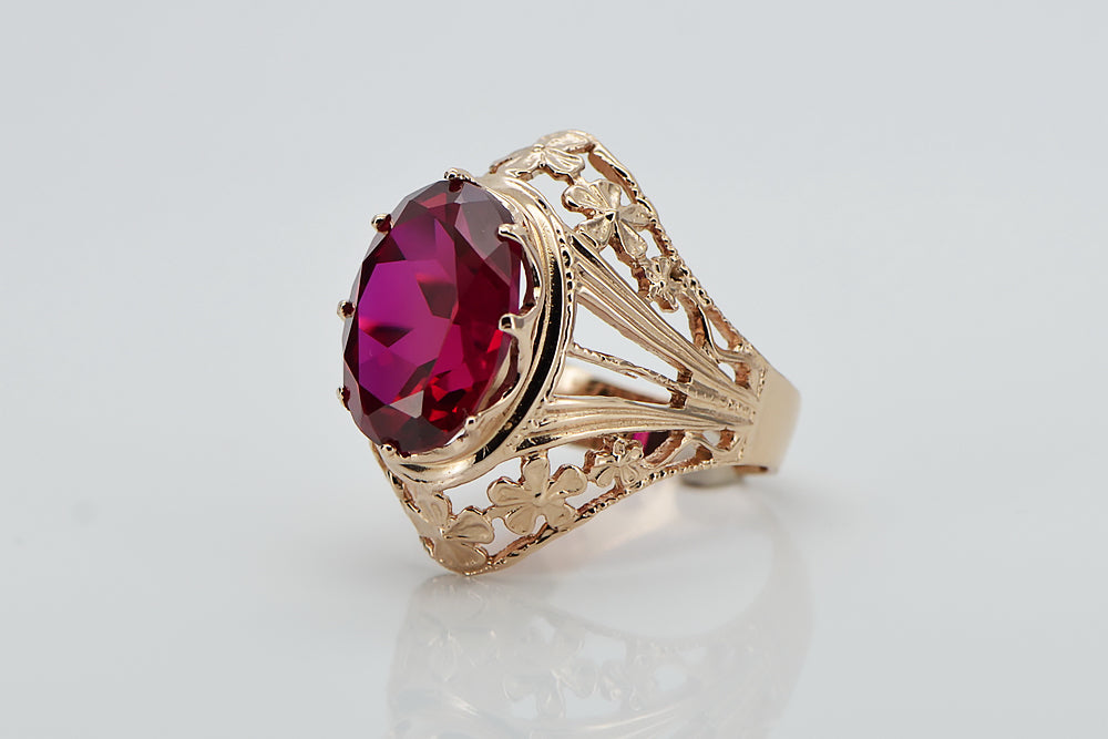 Vintage rose pink 14k gold 585 Ruby ring vrc031 Vintage