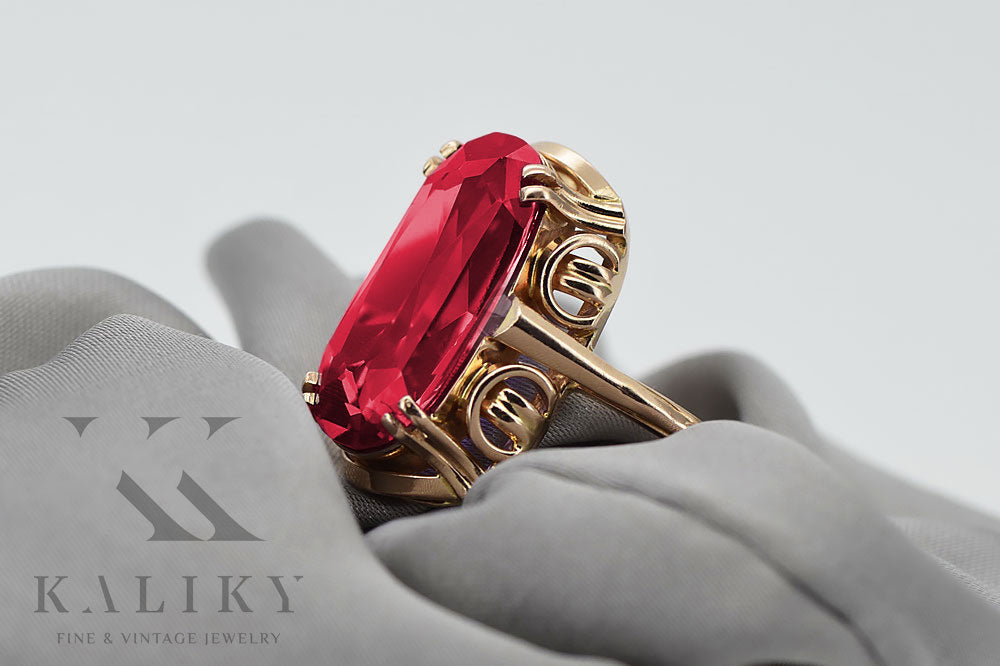 Vintage rose pink 14k gold 585 Ruby ring vrc038 Vintage