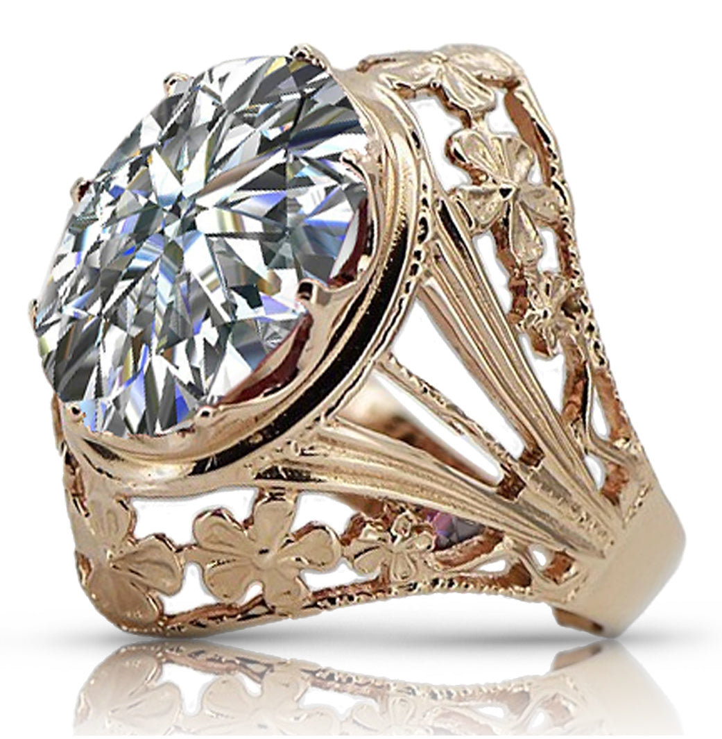 Vintage rose pink 14k gold 585 Zircon ring vrc031 Vintage