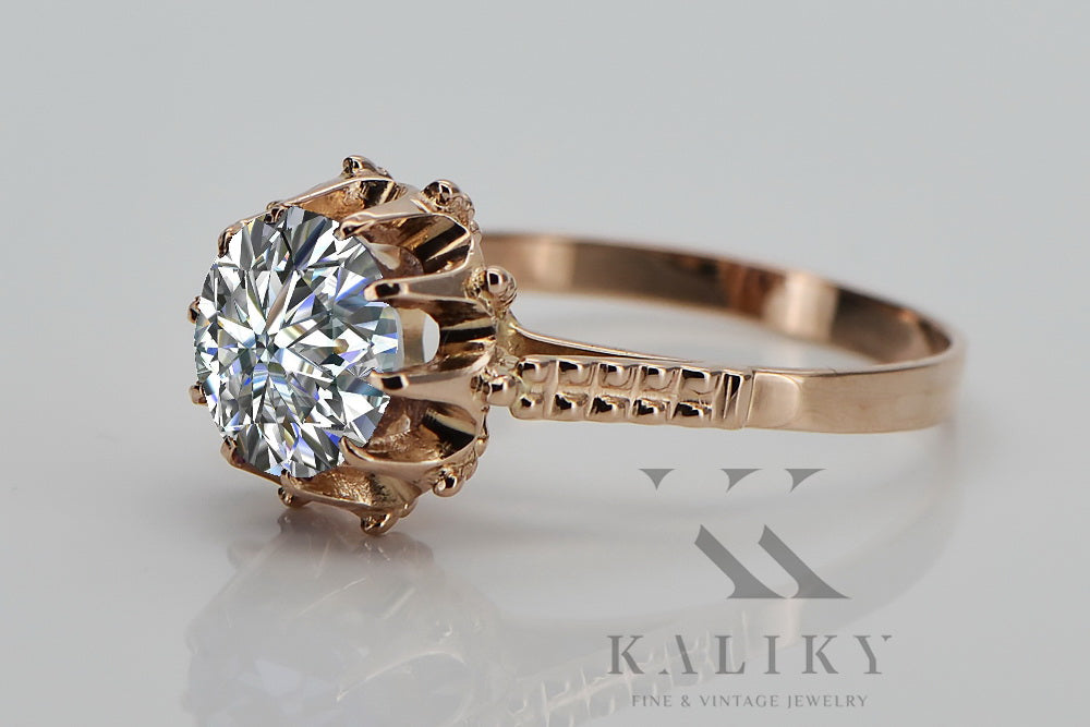 Vintage rose pink 14k gold 585 Zircon ring vrc045 Vintage