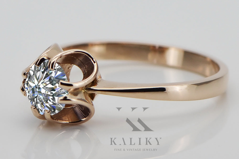 Vintage rose pink 14k gold 585 Zircon ring vrc348 Vintage
