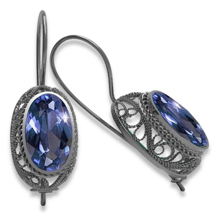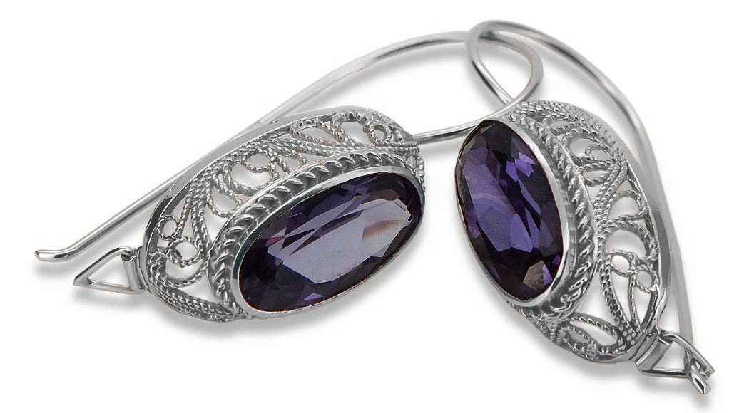 Vintage silver 925 Alexandrite earrings vec023s Vintage Russian Soviet style vec023s-ax