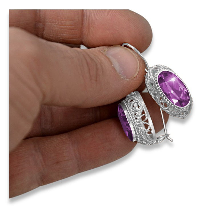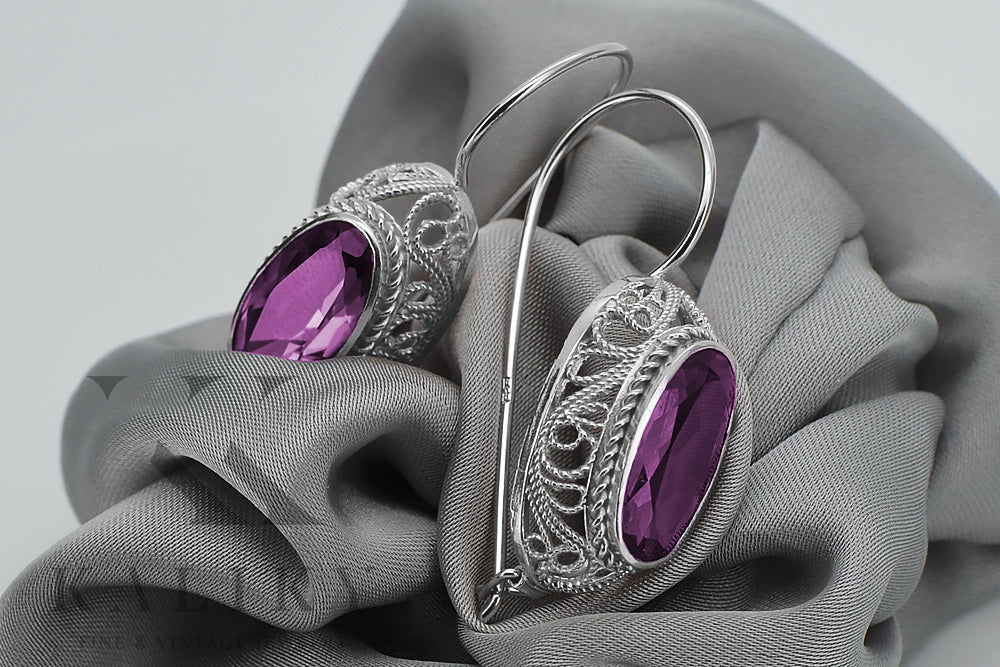 Vintage silver 925 amethyst earrings vec023s Russian Soviet style vec023s-am