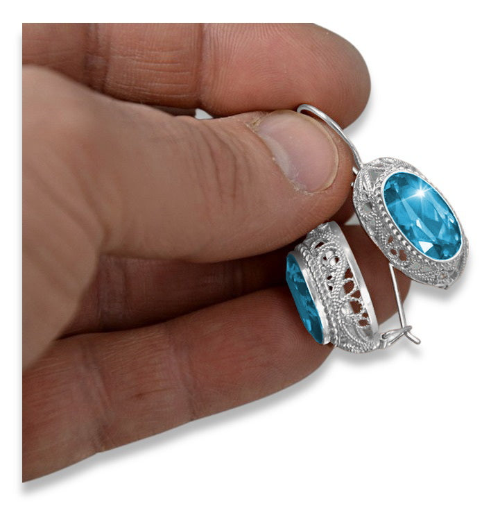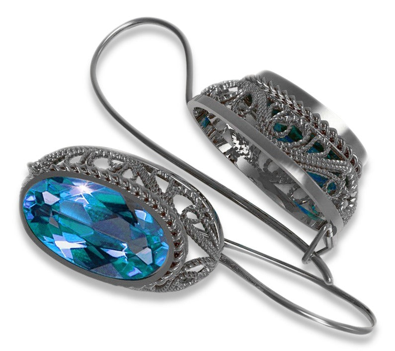 Vintage silver 925 aquamarine earrings vec023s Russian Soviet style vec023s-aq