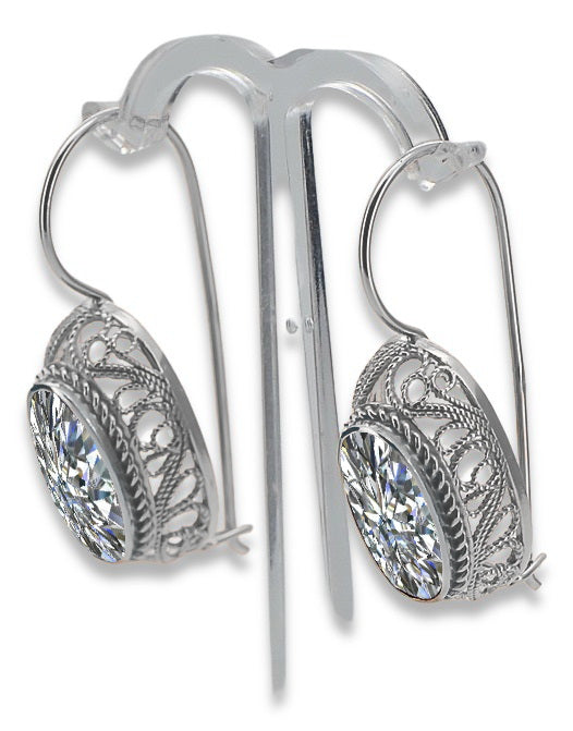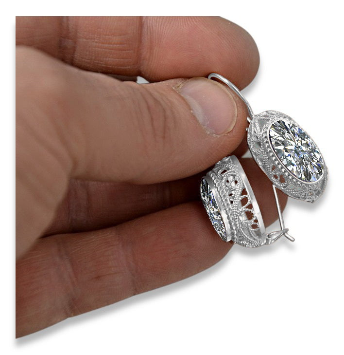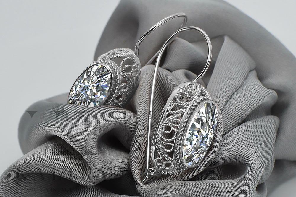 Vintage silver 925 cubic zircon earrings vec023s Russian Soviet style vec023s-zi