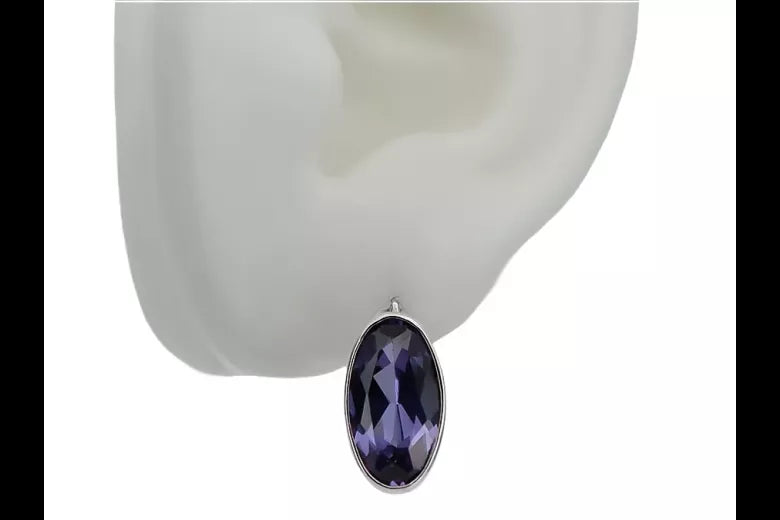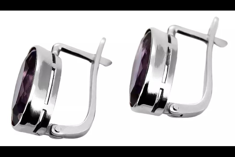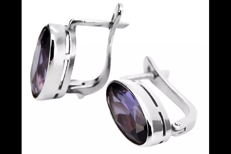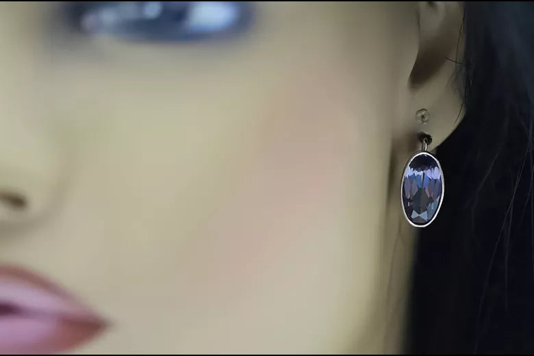 Vintage Silver 925 Earrings with Alexandrite, Oval 8mm/15mm vec001s-ax